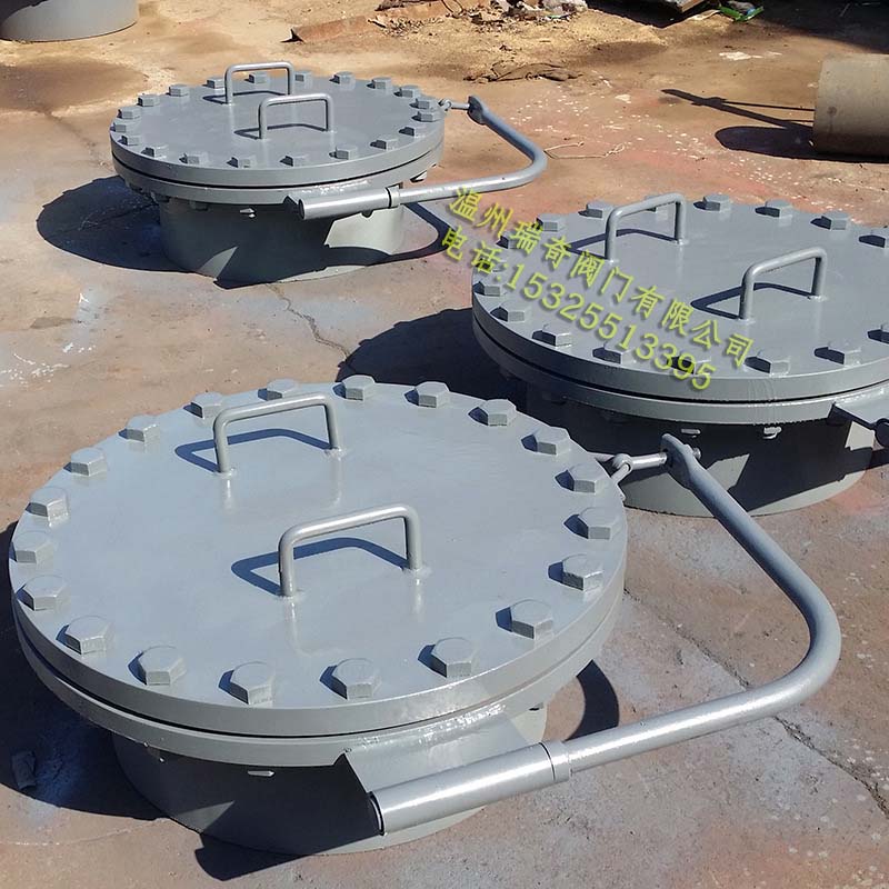 人孔已有成型產(chǎn)品,直徑通常為600mm。人孔中心距地板一般為750mm。便于工作人員在安裝、清洗、維護(hù)時(shí)進(jìn)出油罐或通風(fēng)。非金屬油罐的人孔設(shè)在罐頂上,金屬油罐的人孔設(shè)在罐壁最下圈板上。大都為直徑600mm的圓孔,其中心距底板750mm,為油罐清洗或維修人員進(jìn)出油罐用,又稱作道門(mén)。檢修清理油罐時(shí)刻利用人孔進(jìn)行采光和通風(fēng)。立式油罐的容量在5000m3以下時(shí)設(shè)1~2個(gè)人孔,5000m3以上的設(shè)2個(gè)人孔。人孔的安裝應(yīng)與進(jìn)出油管線相隔不大于90°。當(dāng)只設(shè)一個(gè)人孔時(shí),應(yīng)將其置于罐頂透光孔的對(duì)面;當(dāng)設(shè)2個(gè)人孔時(shí),其中一個(gè)設(shè)在透光孔的對(duì)面,另一個(gè)應(yīng)至少與第一個(gè)人孔相隔90°。人孔應(yīng)有一個(gè)設(shè)在進(jìn)出油管右側(cè)附近,并盡量使人孔正對(duì)罐室密閉門(mén),以便人員進(jìn)出、維修油罐和通風(fēng)接管用。由于人孔安裝在油罐的最下層體圈上,防滲漏就顯得特別重要。要求兩法蘭結(jié)合面必須保證其平直度,無(wú)飄扭現(xiàn)象。加強(qiáng)板和法蘭應(yīng)盡量在整塊鋼板上切割而不拼接。法蘭和蓋板上加工有密封圈,在施工中要特別注意保護(hù)。密封用3mm厚石棉橡膠墊片,不允許有折裂。安裝人孔蓋板上緊螺栓時(shí),要成對(duì)角均勻用力,以防孔蓋變形。