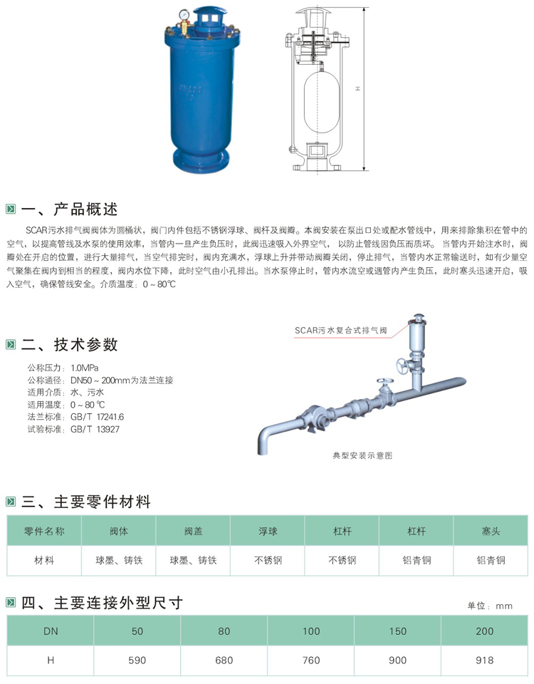 5、當管道負壓時,能快速自動吸氣,防止管道破裂。