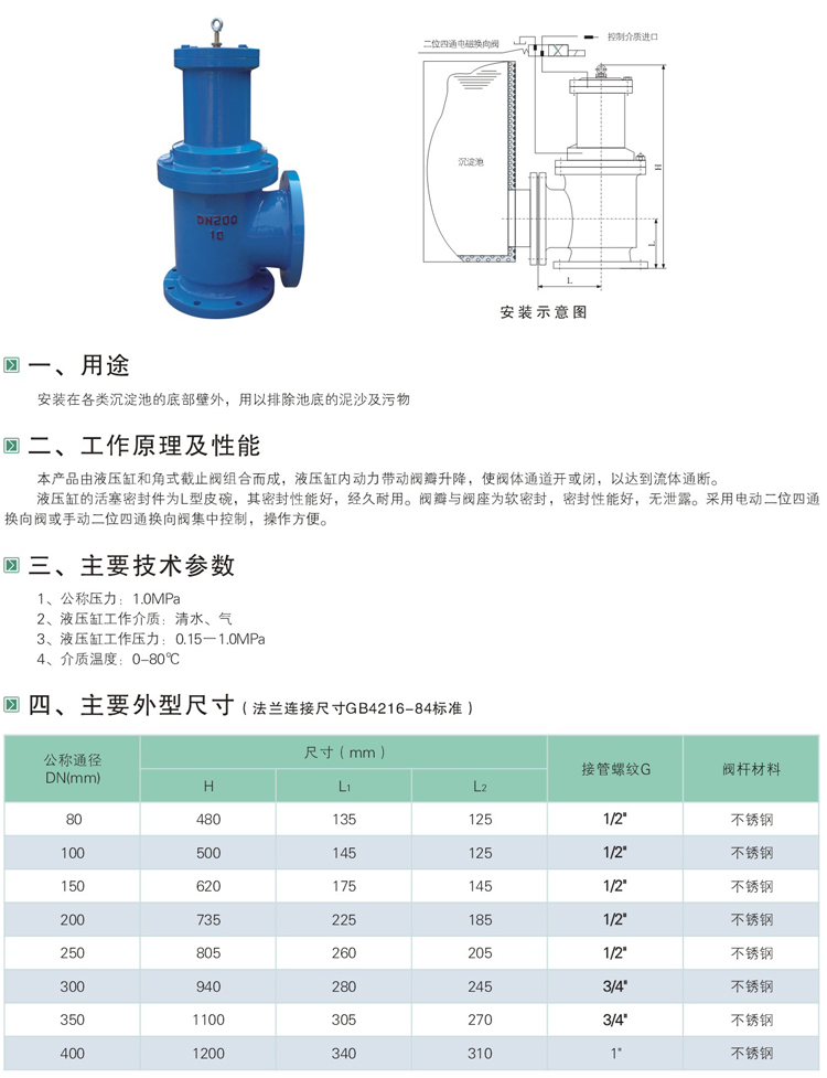 J744X/j644X膜片式快開排泥閥主要技術參數: