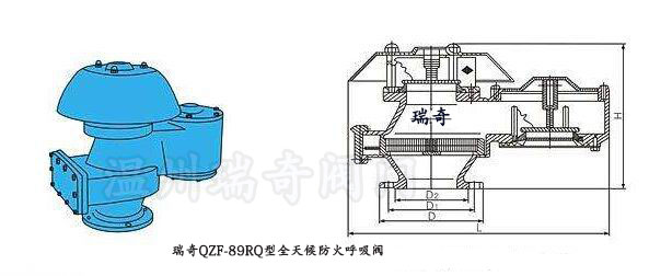 QZF-89RQ瑞奇全天候防火呼吸閥主要是用來滿足儲罐大小呼吸的通氣與阻火要求安裝在儲存甲、乙、丙類液體的儲罐頂上,確保儲罐在超壓時免遭破壞,同時減小儲罐內介質的蒸發損耗。是集阻火器與呼吸閥為一體。它是石化儲罐必備安全設備,其最大優點是阻火呼吸性能好、重量輕、密封性能好、泄漏量小、耐腐蝕維修方便。